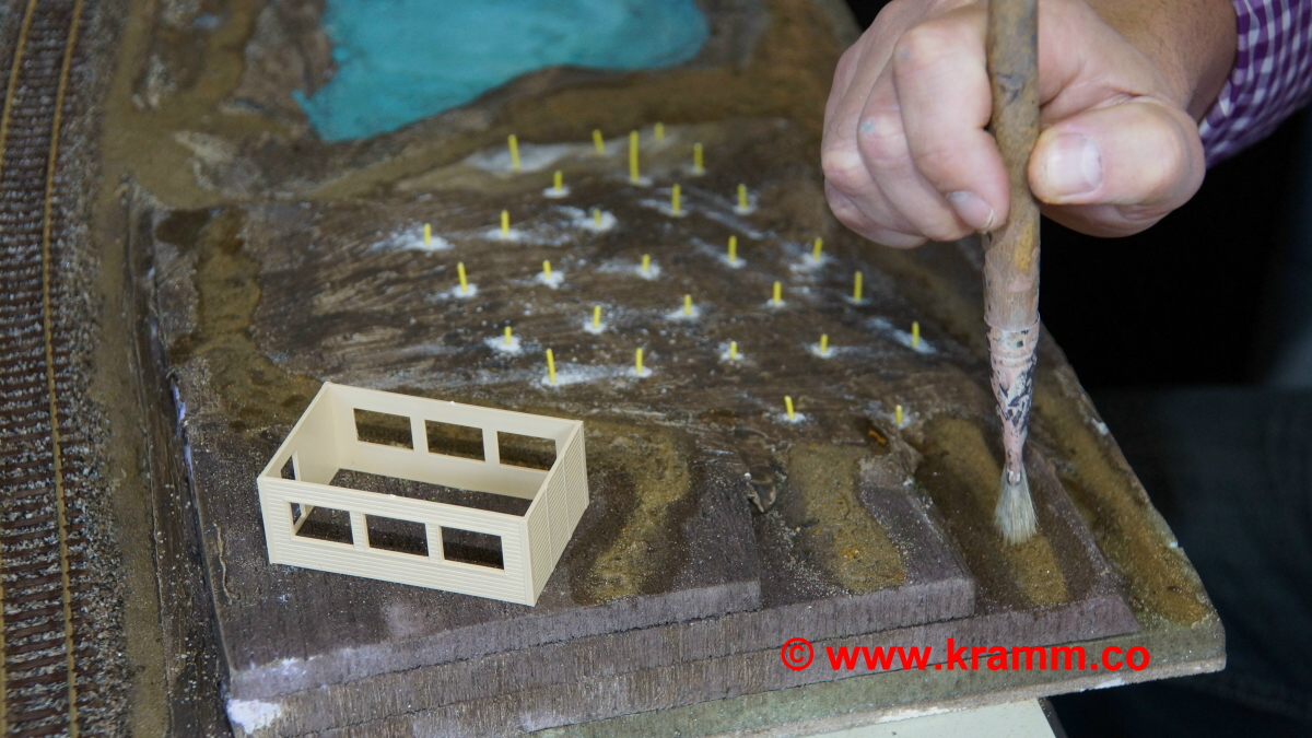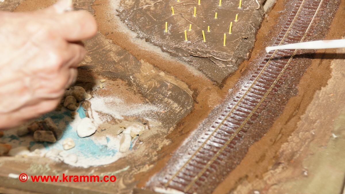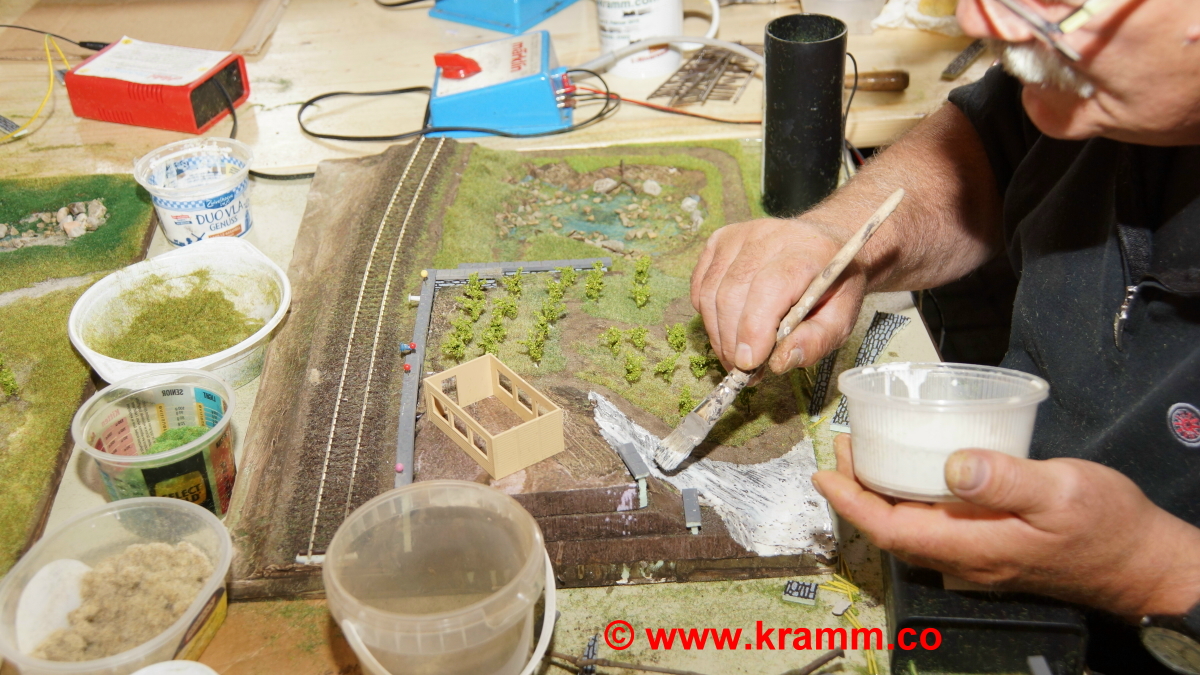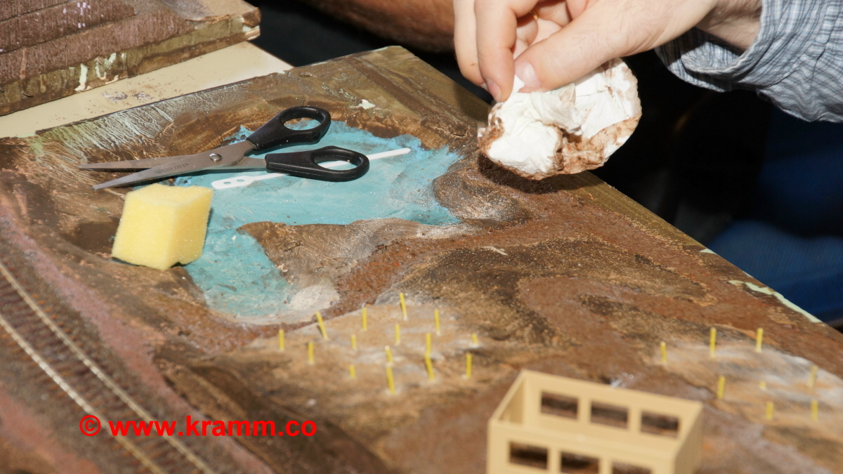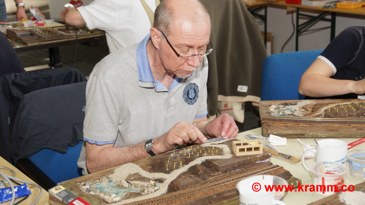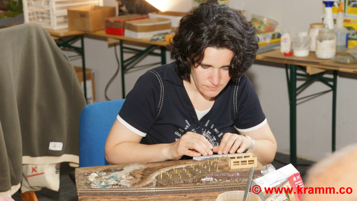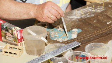 Auch das Einschottern der Gleise und Bahndämme war ein Thema. Jeder durfte sein Diorama individuell mit professioneller Hilfe selbst gestalten.